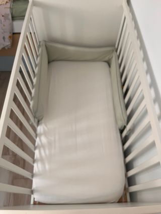 Cuna Gonatt Ikea, colchon y ropa de cama