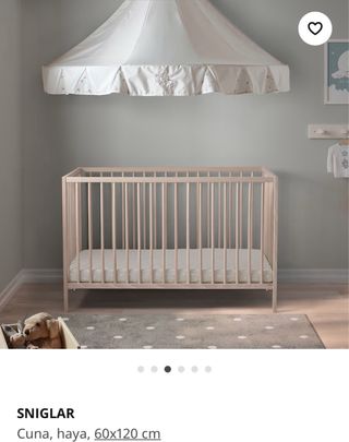 Cuna de madera de Ikea , en su día costo 149€ . La foto no es la real , la desmonte sin intención de venderla , tiene la opción de poner al bebé a doble nivel , abajo del todo o por la mitad . No se envía e habría de recoger en Terrassa. De estado está bastante bien , casi nueva
