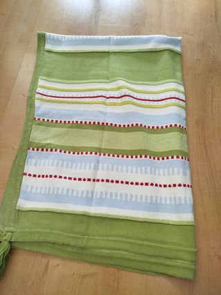 Preciosa colcha tejida de Ikea, en color verde menta con rayas multicolores. Es suave y acogedora, ideal para añadir un toque de calidez a cualquier habitación. O para carro bebe - Diseño de rayas horizontales en tonos pastel. - Material suave y ligero. - Dos borlas en un lateral. Medidas:85x115cm Algodon No hago envios