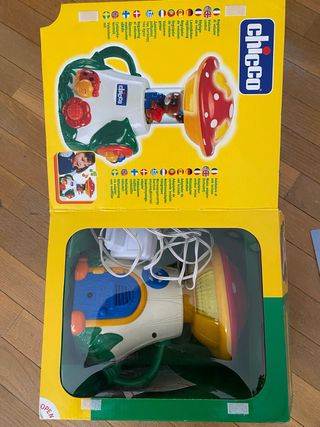 Lámpara de noche para bebés de la marca Chicco, con un diseño divertido de seta y mariquita. - Incluye adaptador de corriente. - Control de volumen.