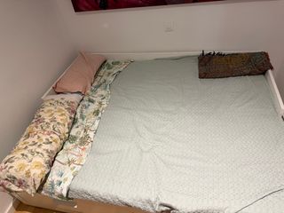 Se venden dos camas infantiles Sniglar, con las patas recortadas para colocarse debajo de la litera Kura. Perfectas para dormitorio de 3 niños. No incluye la litera Kura. - Estructura de madera. - Incluye colchones en buen estado con funda lavable - Incluye una barandilla de cama Sniglar -Están desmontadas y se pueden llevar fácilmente en un coche con el maletero extendido, la máxima longitud de un tablón es 1,60m