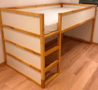 Cuna de madera clara de Ikea, ideal para habitaciones infantiles. Su diseño sencillo se adapta a cualquier estilo. - Estructura de madera. - Barreras de seguridad. - Incluye el colchón.