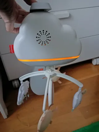 Móvil para cuna de la marca Fisher-Price con divertidos colgantes. - Diseño con nubes, arcoíris y ratoncito. - Colores pastel y alegres. - Soporte adaptable a la mayoría de cunas.