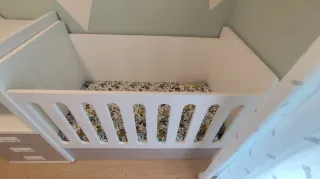 Cuna convertible que se adapta al crecimiento de tu hijo, transformándose en una habitación infantil. Cuando tu bebé crezca esta cuna se convertirá en una cama de 90 x 190 cm, una mesita de noche y una estantería. Esta cuna requiereun colchón de cuna de 60 x 120 cm(NO INCLUIDO EN EL PRECIO) - Diseño moderno y funcional. - Incluye cambiador. - Cajones de almacenamiento integrados.