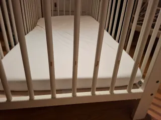 conjunto colchón ANTIAHOGO y mini cuna adaptable para colecho marca DOCO, regulable en diferentes alturas, te sirve para camas hasta unos 54cm de altura. la cuna la compramos y se puede decir que la hemos usado para dejar la ropa del bebé únicamente... tiene marcas mínimas de leve desgaste que se pueden ver en las fotos. incuyo también las chichoneras.