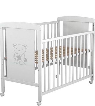Cuna de colecho fabricada en madera, con unas medidas de 120x60cm. Cuenta con un diseño infantil con un osito. - Estructura de madera blanca. - Lateral con dibujo de osito. - Ruedas para facilitar su movilidad. Se puede ajustar en diferentes alturas. Puede ser colecho o no. Montaje muy simple y rapido. Incluimos algunos de accesorios como protectores laterales que se cuelgan a los barrotes (ver foto) No viene con colchon.