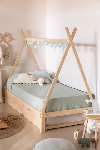 Cama infantil estilo tipi de madera natural, con unas medidas de 80x160cm. Perfecta para crear un espacio de ensueño. - Estructura de madera. - Diseño tipi. - Medidas: 80x160cm.