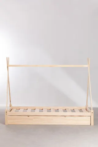 Cama infantil con diseño de tipi, fabricada en madera. Ideal para crear un espacio de juego y descanso. - Estructura de madera de pino natural. - Incluye cajón inferior cama - Diseño inspirado en tipis