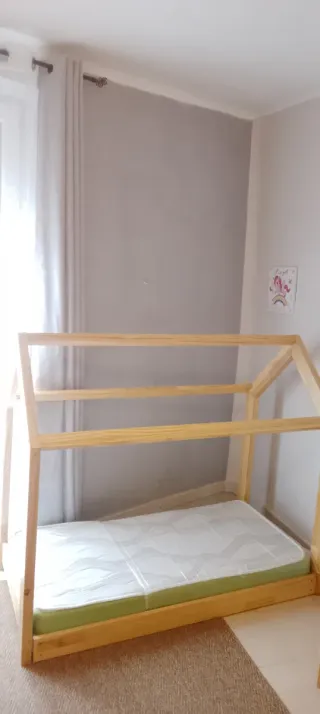 Cama infantil de madera con diseño de casita, ideal para crear un espacio de juego y descanso. - Estructura de madera natural. - Diseño de casita. Esta en muy buen estado, queda preciosa