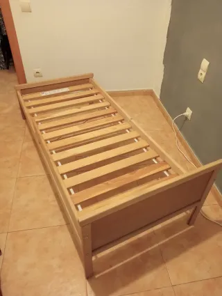 Litera de madera con somier de listones. - Estructura de madera. - Somier de listones de madera.