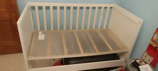 Cuna de IKEA en color blanco. Ideal para habitaciones infantiles. - Estructura de madera. - Barras de seguridad. - Base para colchón. - Convertible en cuna colecho. - 90*120