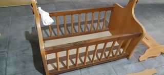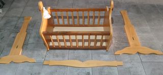 Cuna fabricada por encargo, de capricho,en madera de haya, en buen estado, con movimiento para dormir al bebe