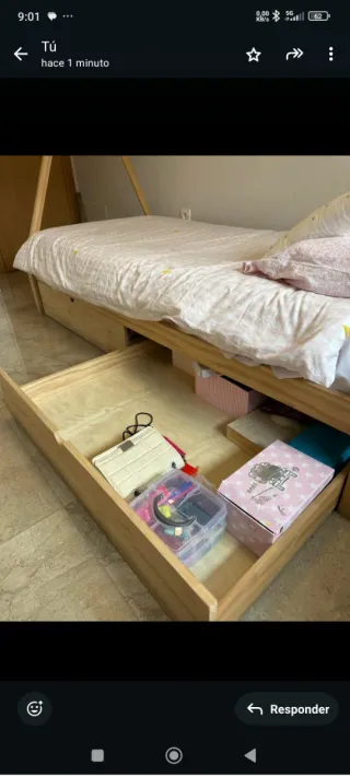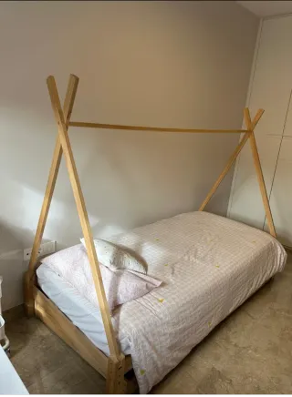 cama para niños en diseño de carpa indio - estructura estable - fácil montaje - incluye somier Puede que la madera tenga algún desperfecto, aunque se puede pintar sin problema. También tengo colchón enma sin uso. Perfecto para una habitación infantil