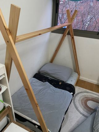 Cama infantil tipo tipi de madera amb el matalàs