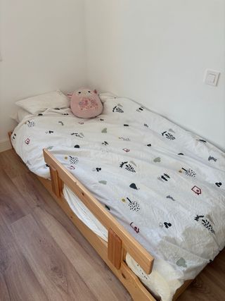 Cama estilo Montessori, ideal para fomentar la autonomía. El colchón está nuevo, no se ha usado nunca - Estructura de madera. - Diseño abierto y seguro.