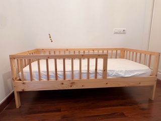 Cama infantil de estilo Montessori, perfecta para fomentar la autonomía. - Estructura de madera de pino natural. - Medidas del colchón: 70x140 cm. - Diseño bajo para fácil acceso. - Ningún arañazo