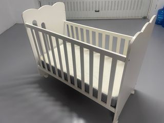 Cuna de bebé blanca con un bonito diseño de ositos. - Lateral con barrotes. - Decoración de ositos en el panel frontal. - Incluye colchón.