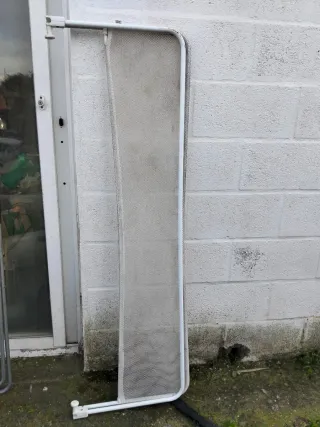 Barandilla de seguridad para camas altas o literas. Fabricada en metal blanco con malla. - Estructura metálica. - Malla de seguridad. - Color blanco.