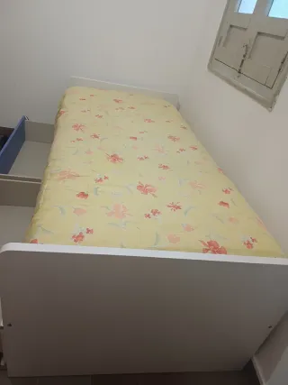 Se vende cama infantil , ideal para habitaciones de niños. Incluye colchón. - Estructura de cama blanca. - Colchón cómodo y en buen estado.