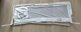 Barandilla de seguridad para cama de niños. Ayuda a prevenir caídas durante la noche. - Estructura metálica blanca. - Malla de tela blanca. - Se ajusta a todas las camas.