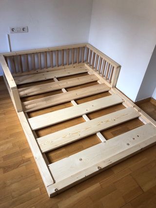 Cama baja de estilo Montessori, ideal para fomentar la autonomía. - Estructura de madera natural. - Diseño seguro y accesible. -135x190 -Disponibilidad en otras medidas