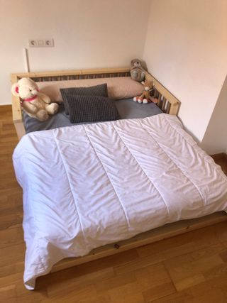 Se vende cama infantil de IKEA modelo Ovejitas. - Medidas: 70x160 cm. - Diseño con figuras de ovejas en el cabecero. Con o sin colchón Colchón perfecto!! 20 euros sin colchón / unidad 1 Colchón prácticamente nuevo y grueso de espuma. 40 euros. 1 Colchón de inferior calidad en buen estado. 30 euros.