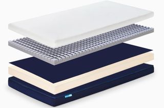 Colchón multicapa Equs Kids con diseño de capas. Se vende porque me equivoqué y necesito otro tamaño - Capa superior blanca. - Capa intermedia con estructura de celdas. - Capa azul. - Capa de espuma color crema. - Base azul.
