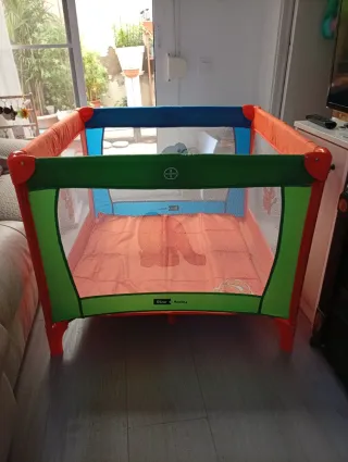 Parque infantil y cuna de viaje para bebés, fácil de montar y transportar. - Estructura de tela resistente y segura. - Diseño multicolor con paneles de malla. - Base acolchada para mayor comodidad. Cuna o parque infantil en buen estado, ligera y fácil de montar y plegar. Estructura resistente con laterales de malla transpirable para mayor seguridad y visibilidad. Incluye colchoneta acolchada. Incluye colchoneta base + colchonetas extra más cómodas y seguras (ideal para evitar golpes). Medidas: • Largo: 125 cm • Ancho: 75 cm • Alto: 77 cm
