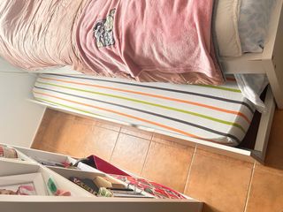 Estructura de cama para niño con almacenaje de dos cajones y sumier enrrollable incluido.Esta casi sin uso.La vendo por falta de espacio.Muy similar a la primera foto. - Medidas: colchon de 90x 1.80 Estructura montada:2.10x1.05