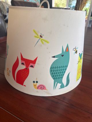 Preciosa lámpara infantil con ilustraciones de animales. Ideal para una habitación infantil. - Diseño con animales de estilo nórdico. - Perfecta para crear un ambiente acogedor. - Presenta algunas manchas de uso en la pantalla.
