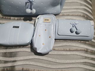 Bolso bebé azul con lunares