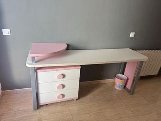 Se vende dormitorio infantil. - Cama alta con barrera de seguridad. - Cama inferior con cajonera - Armario de madera con dos puertas. La forma de ponerlo no esa yo la tengo así por que mi hija lo ha querido asi