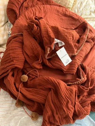 Dosel de tela en color teja, ideal para decorar la habitación. - Diseño con forma de cono. - Cierre con botones de madera. - Adorno de cuentas en los laterales.