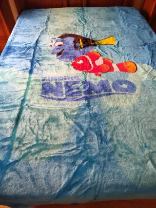 Manta suave y acogedora con diseño de los personajes de Buscando a Nemo de Disney. Perfecta para añadir un toque divertido a la habitación. - Personajes: Nemo y Dory. - Diseño: Finding Nemo de Disney. - Material: Textil suave.