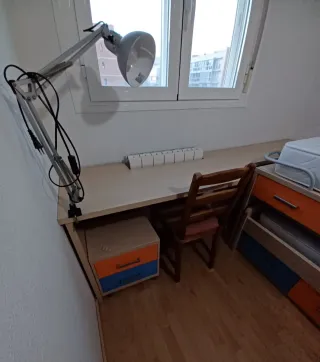 Habitación completa en buen estado - Cama superior con colchón. - Cama inferior extraíble con colchón. - Cajones de almacenamiento en colores aul y naranja. Armario y mesa estudio. Desmontaje y transporte por cuenta del comprador. Está en Zaragoza capital