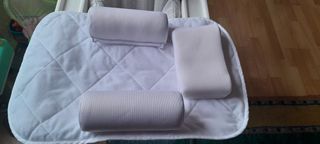 Nido reductor para bebé con un suave estampado de estrellas grises sobre fondo blanco. Muy cómodo y útil para los primeros dias/meses del bebé y tenerle cerquita ya sea en el sofá o la cama. Está como nuevo 100%, no tiene ninguna mancha ni ningún desperfecto. Lo hemos usado muy muy poco.