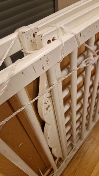 No negociable. Cuna de madera Gulliver. Como nueva porque era la que teníamos en casa de los abuelos por si acaso. Prácticamente sin uso, igual que una nueva. Uno de los laterales se puede quitar cuando el niño es mayor para que pueda subir y bajar solo. Incluye accesorio tipo "barrera" para evitar caídas en este último caso. Materiales: Componentes principales/ Barrotes/ Estructura de somier: Madera maciza, narniz acrílico pigmentado. Riel de cama: tablero de fibras, Madera maciza, Barniz acrílico pigmentado. Tela: 100% nylon Precio nueva 129€
