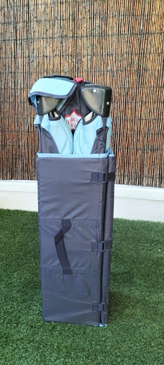 Cuna de viaje, que sirve también como parque infantil. Tiene una cremallera para que l@s niñ@s puedan subir y bajar sol@s.