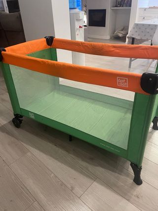 Tiene 2 niveles para facilitar el descanso del bebé de una manera segura. 0 - 36 meses. Nivel superior: + 0 meses / 3 ó 4 meses (hasta que el bebé empiece a sentarse o levantarse sobre sus brazos). Para colchón de 120,5 X 60 cm. Se encuentra en muy buen estado. - Incluye ruedas para facilitar el movimiento. - Incluyo colchón que teníamos de unos 5cm para hacerla más cómoda. - Fácil de plegar y transportar. - Estructura resistente.