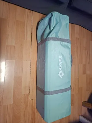 Vendo cuna de viaje de la marca Safety 1st, muy práctica y funcional. Ideal como cuna secundaria para casa de abuelos o para llevar de vacaciones gracias a su plegado compacto. Estado: La cuna funciona perfectamente y la estructura es totalmente estable. Detalles de uso: Presenta algunas marcas de uso y pequeñas manchas puntuales que no han salido del todo en la limpieza, de ahí su precio reducido. Portabilidad: Incluye su bolsa de transporte original con asas, lo que facilita mucho el traslado. Seguridad: Cuenta con esquineras de plástico redondeadas para evitar golpes. Visibilidad: Laterales de red que permiten ver al bebé