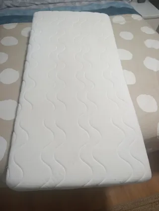 Colchón para cuna en buen estado. - Funda de tejido suave. - Forma rectangular con bordes redondeados.