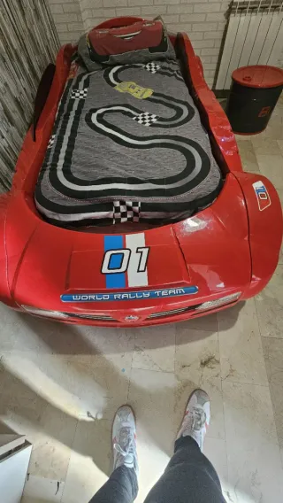 Preciosa cama infantil con diseño de Frozen. Incluye colchón. *Cabecero con ilustraciones de las princesas Ana, Elsa y su amigo Olaf. Piecero con Kristoff y Sven. *Tamaño: toddler size (infantil). Hasta los 7 años aproximadamente. * Material: madera * Dimensiones del producto 143l. x 77an.x 60al. centímetros * Función especial: con listones * Fabricado en madera resistente de alta calidad de 15 mm de grosor. * Bordes redondeados para mayor seguridad * Muy fácil de montar, práctica y resistente. * Incluyo el colchón La entrego desmontada con todos los tornillos e instrucciones. Todo bien guardado y conservado.