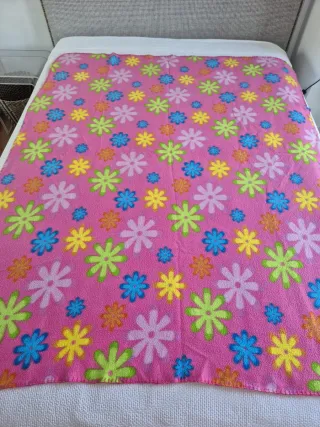 Manta infantil rosa con flores de colores