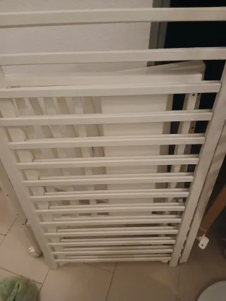 Cuna de bebé de la marca IKEA, ideal para habitaciones infantiles. Su diseño clásico se adapta a cualquier estilo. - Estructura de madera lacada en blanco. - Barreras de seguridad. - Incluye colchón. tiene alguna que otra marca de uso pero de allí el precio. ese pequeños golpe si se pone hacia la pared apenas se ve