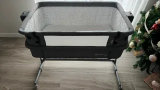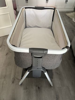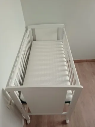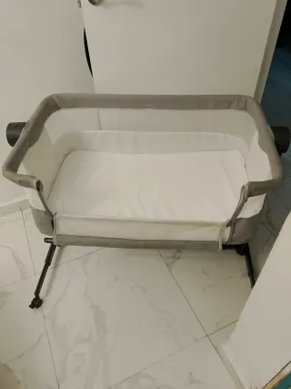 Cuna de colecho en perfecto estado, utilizada solo 2 meses. Ideal para tener al bebé cerca. - Estructura de madera y textil. - Laterales de malla transpirable. - Incluye colchón y también mosquitera.