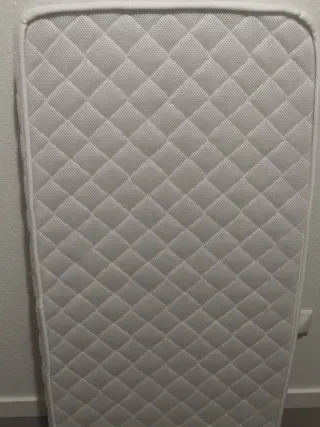 Colchón para cuna con tejido Aloe Vera, ideal para el descanso del bebé. - Medidas: 140x70 cm. - Tejido transpirable. - Tratamiento Aloe Vera. - Casi nuevo. Muy poco uso.