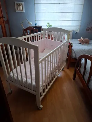 Cuna para bebé en perfecto estado, con lateral abatible. Con el colchón 70€, solo la cuna 60€.