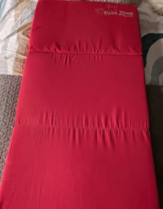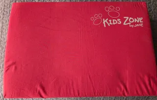 Colchón plegable para cuna de viaje de la marca Jane. - Color rojo. - Diseño con huellas y logo Kids Zone by Jane. - Medidas, 3 partes de 60 x 40cm
