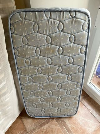 Colchón para cuna de espuma de poliuretano. Marca Poligón. Medidas 95x50 cm. Ancho 10 cm. Es una medida muy específica, venía con una cuna antigua artesanal que compramos. Está usado, aunque no por nosotros. Lo limpiamos con una aspiradora de tapicería pero no lo llegamos a usar. Las marcas que se ven no son sucio, son gastado de frotar con la aspiradora.