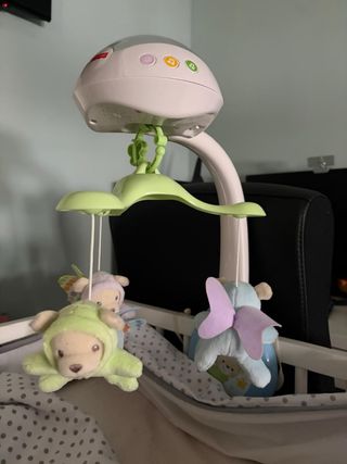 Móvil de cuna para bebés en perfecto estado. Tiene una rueda para girar con música.